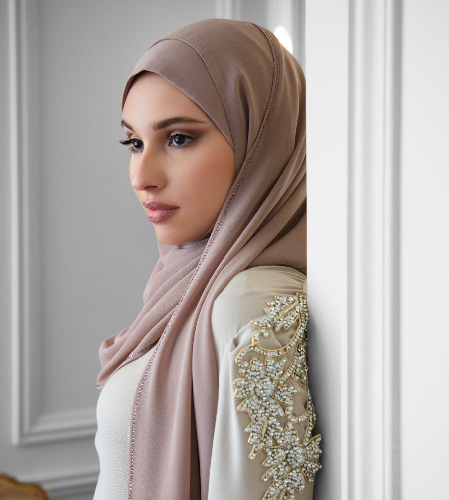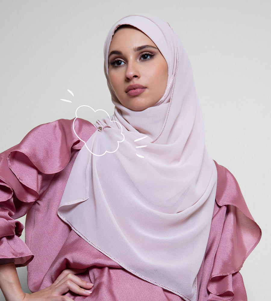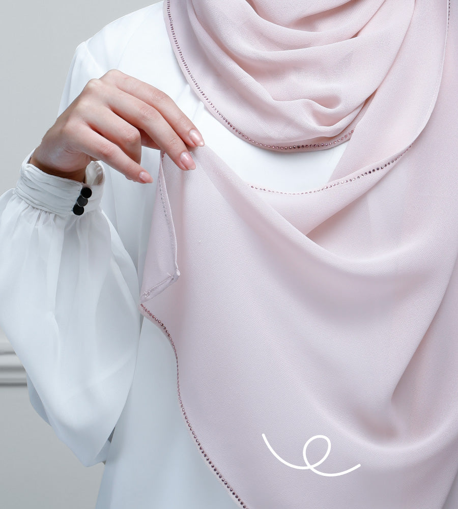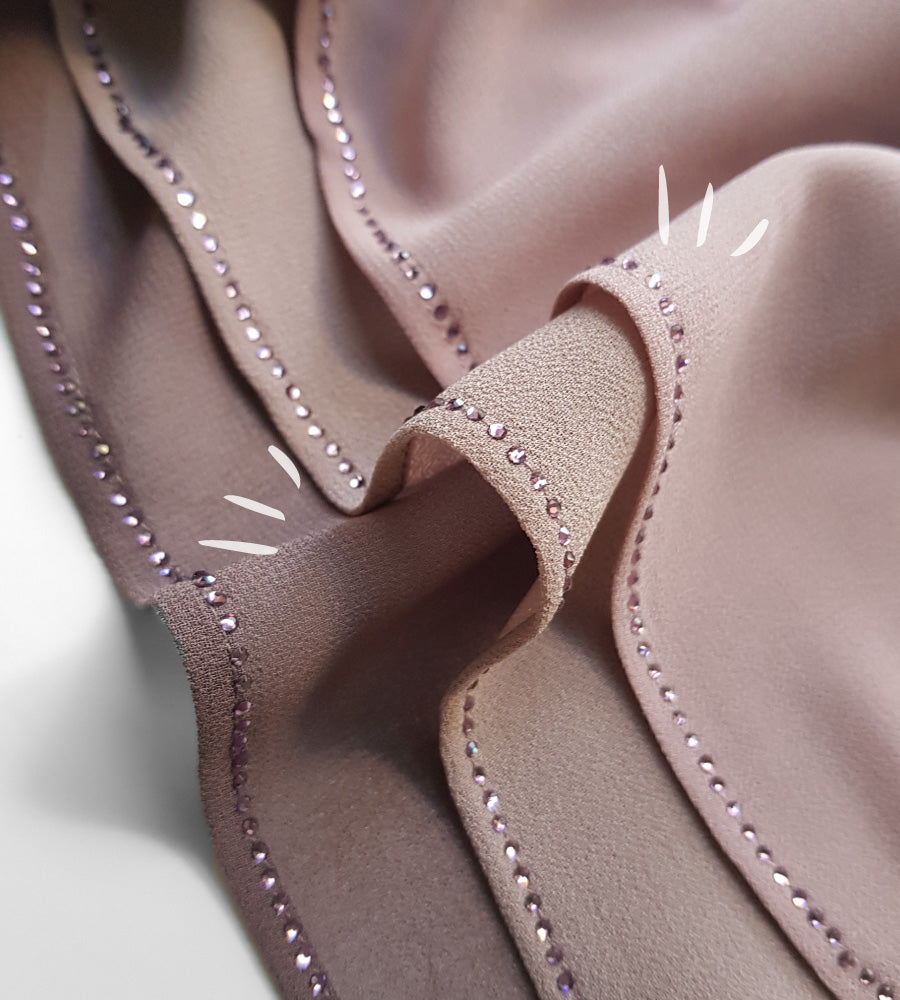 Introducing our latest innovative pinless wrapped hijab style: The JOLIE instant hijab ~with crystals~ is your drapey dressy hijab for your special occassions: Eid outfits, formal events, wedding parties, bridal showers, & more..