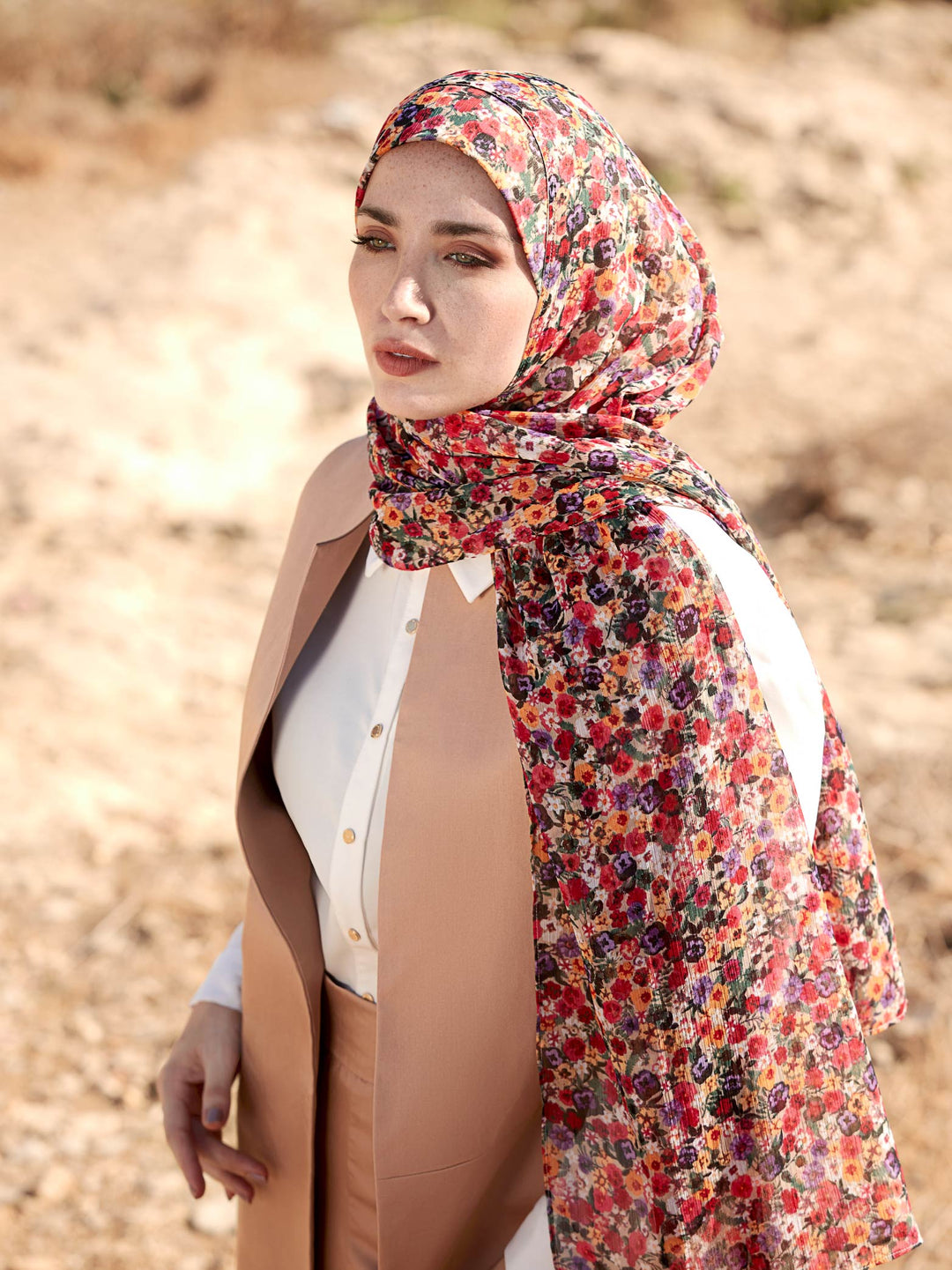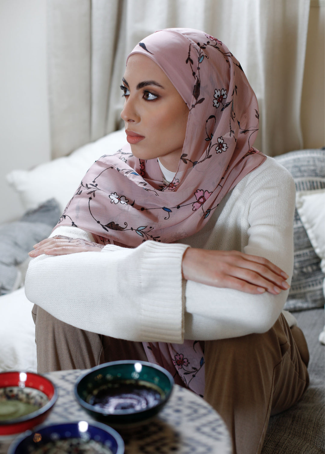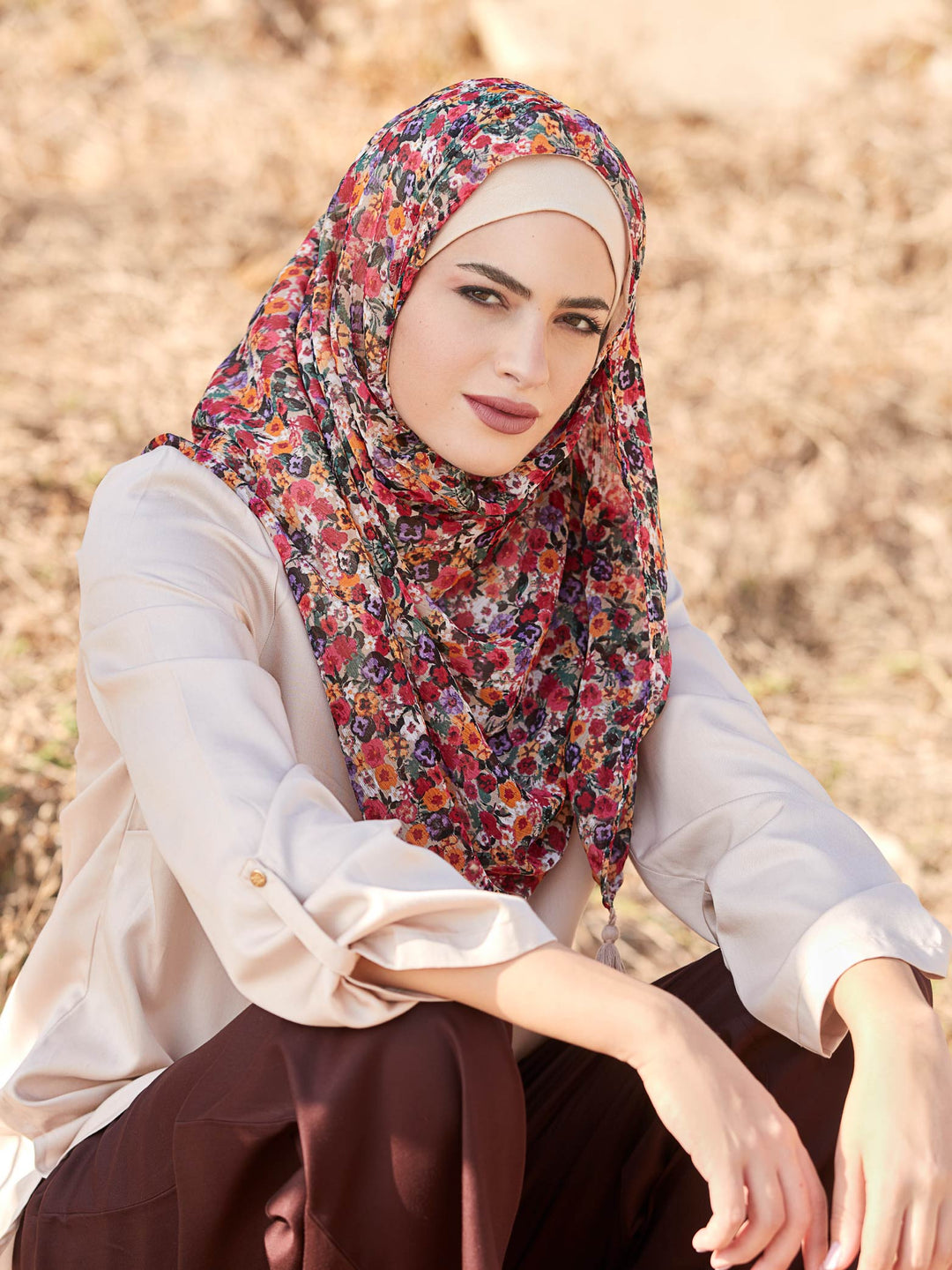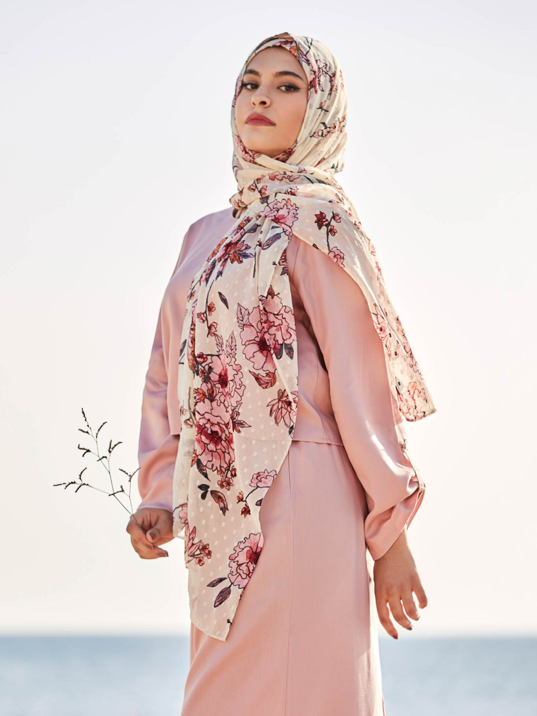 This ready-to-wear designer hijab is made of exclusive lightweight fabric and lined with 100% cotton voile to ensure breathability and comfort for hijabi women.