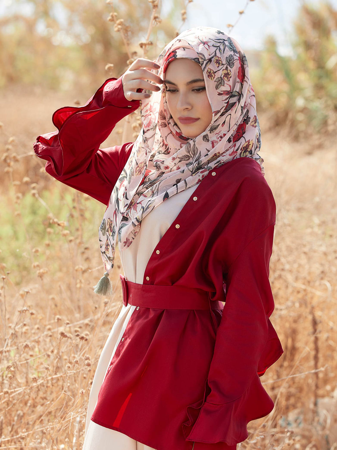 This ready-to-wear designer hijab is made of exclusive lightweight high-quality fabric and lined with 100% cotton voile to ensure breathability and comfort for hijabi women.