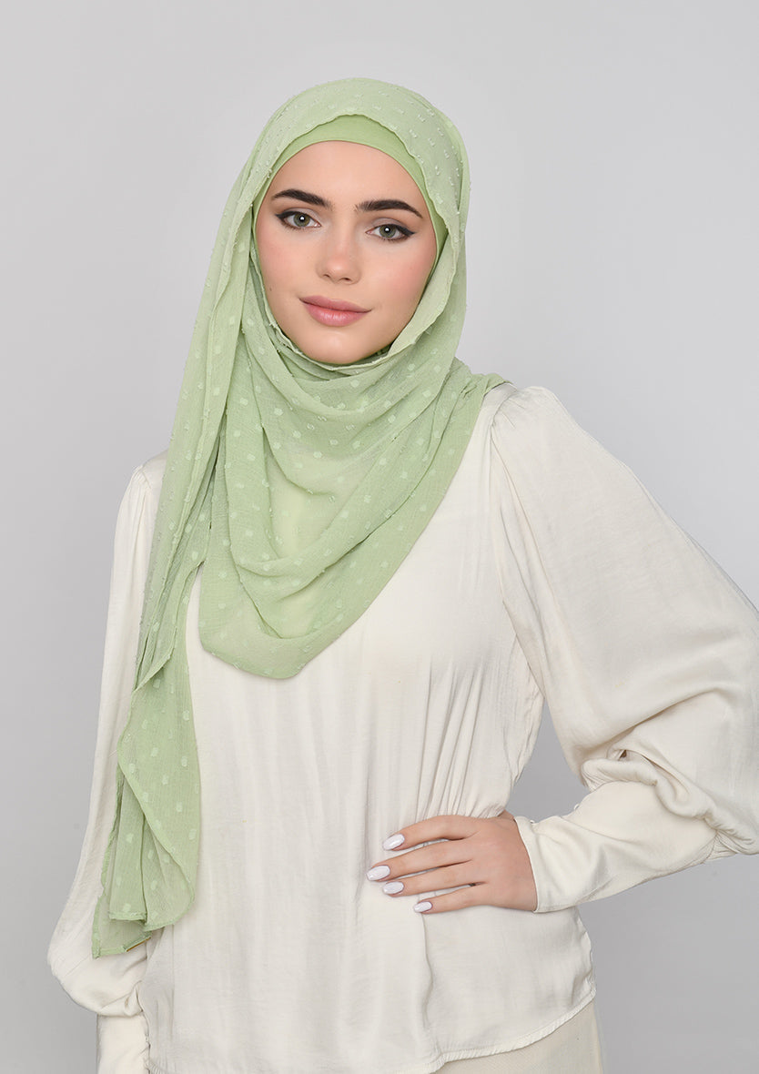 A colorful collection tailored from swiss dot Butti Chiffon fabric, that will add a twist to your regular hijab style.